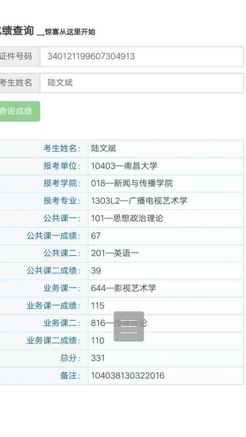 政治67英语39影视艺术115传播理论110总分331一志愿报考的是南昌大学的广播电视艺术学在校期间拿过一次国家奖学金两次国家励志奖学金安徽省防震减灾宣传作品征集大赛优秀...
