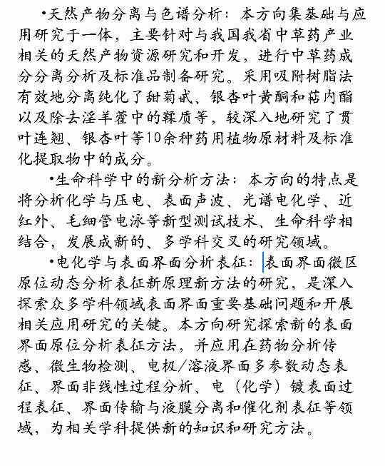 学校有三个研究方向:①天然产物分离与色谱分析②生命科学中的新分析方法③电化学与表面界面分析表征详细介绍图片上有,求广大虫友们给个建议,哪个方向比较好,谢谢!暂时感觉对第一...