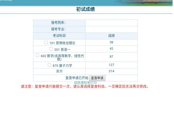 314分 物理学 报考的华中科技大学 求调剂
