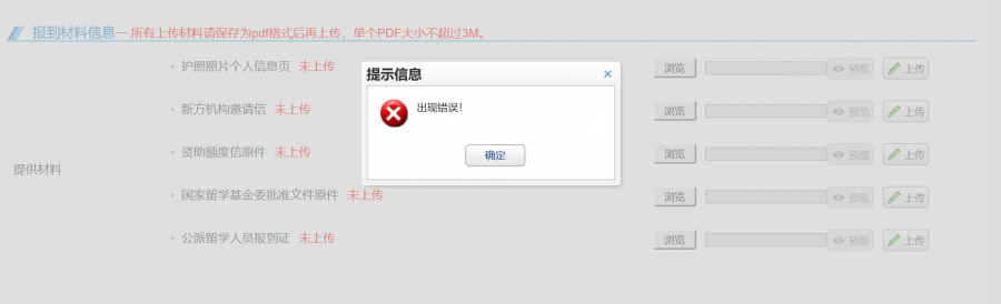 CSC网上报到上传资料失败