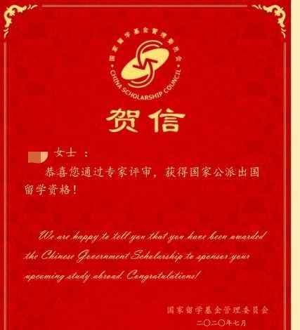Csc政府互换奖学金项目昨天晚上收到的大红奖状