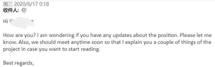 原话:DearQinghaoShenIamveryinterestedinyourapplication,however,IcannotredyourCV,thepdfiscorruptedIthink.Couldyousendmeagain.Woulditb...