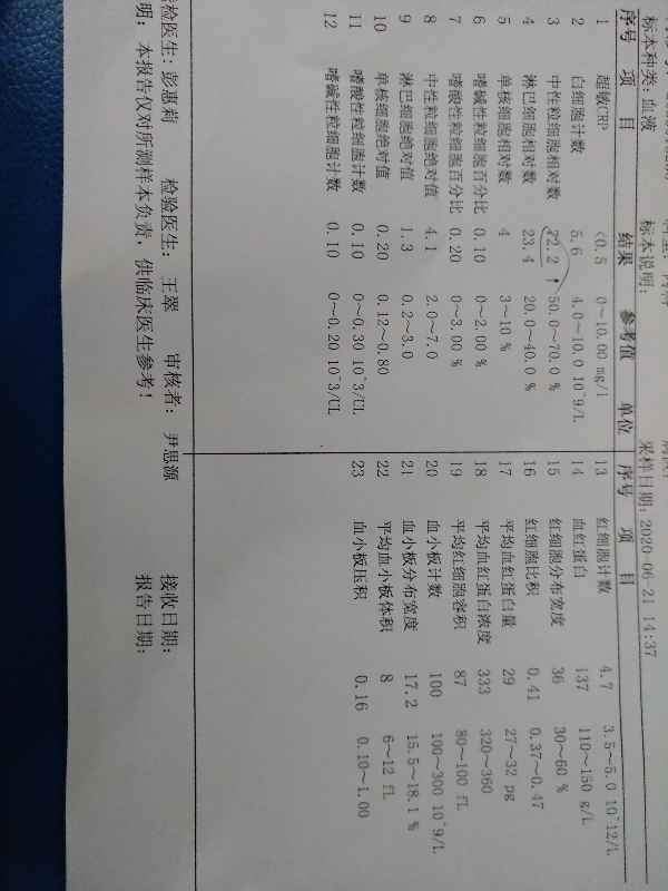 血常规检查,中性粒细胞相对数有点高2.3代表什么意思