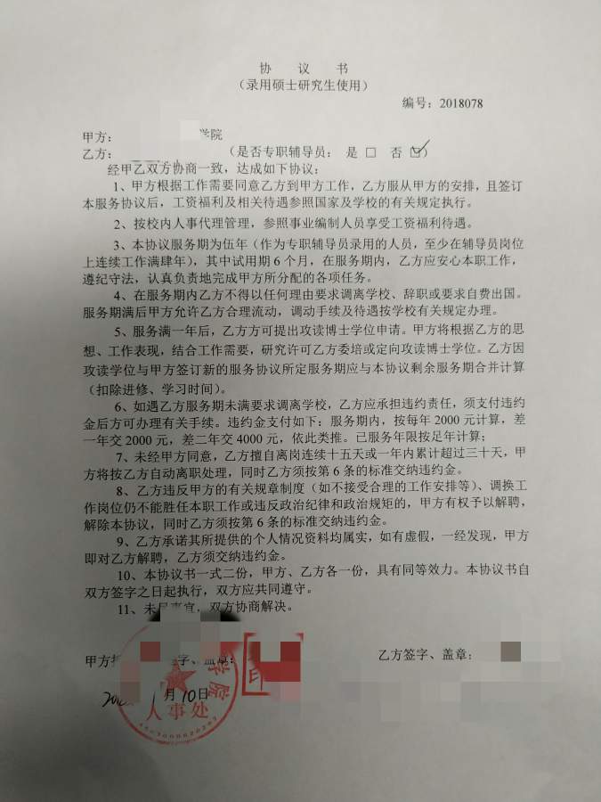 应届博士签学校,只签了三方,关于引进待遇的协议单位不给签