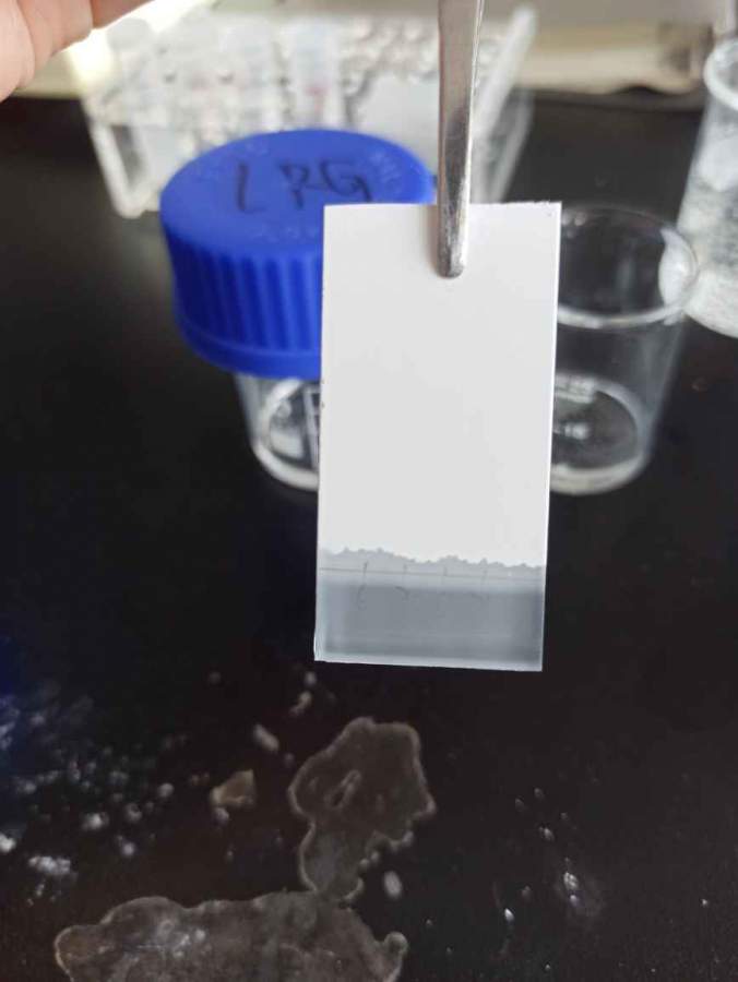 做的葫芦脲的分离,用h系列的硅胶板做层析。水,乙酸,甲酸,混合溶液做的展开剂,每次爬到基线就不爬了,请问是因为水酸对硅胶板的影响吗?要用反相板吗下面是我隔夜做的层析,还出...