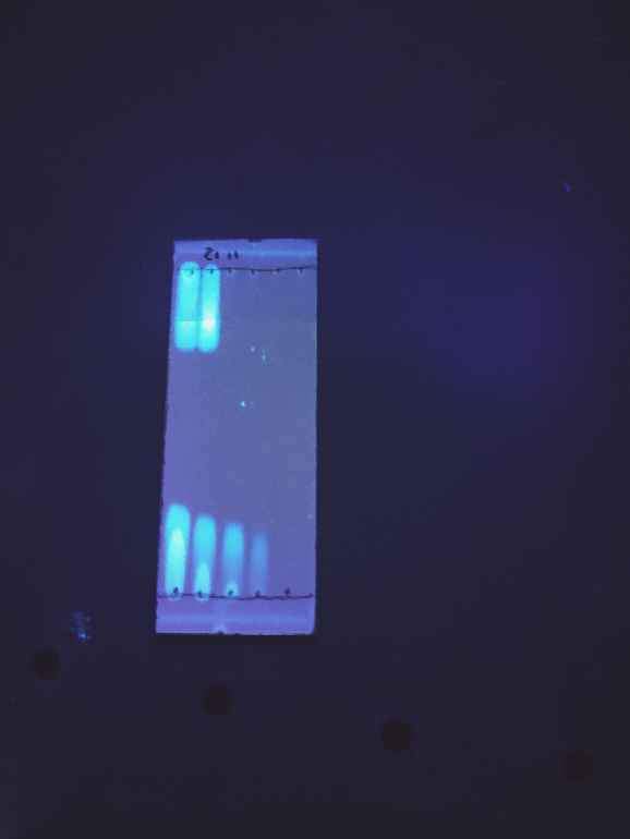 优化条件阶段得不到纯产物,但自己做了标样,原料和产物爬板基本分不开,只能根据产物点碘熏颜色发黑判断,最后是加了内标,做氢谱进行判断的。扩展底物阶段,因为取代基发生了变化,...