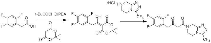 本人在做西他列汀中间体的时候,一锅法用2,4,5-三氟苯乙酸跟米氏酸形成米氏酸中间体,然后再加入侧链(3-三氟甲基-5,6,7,8-四氢-[1,2,4]三唑[4,3-a]...