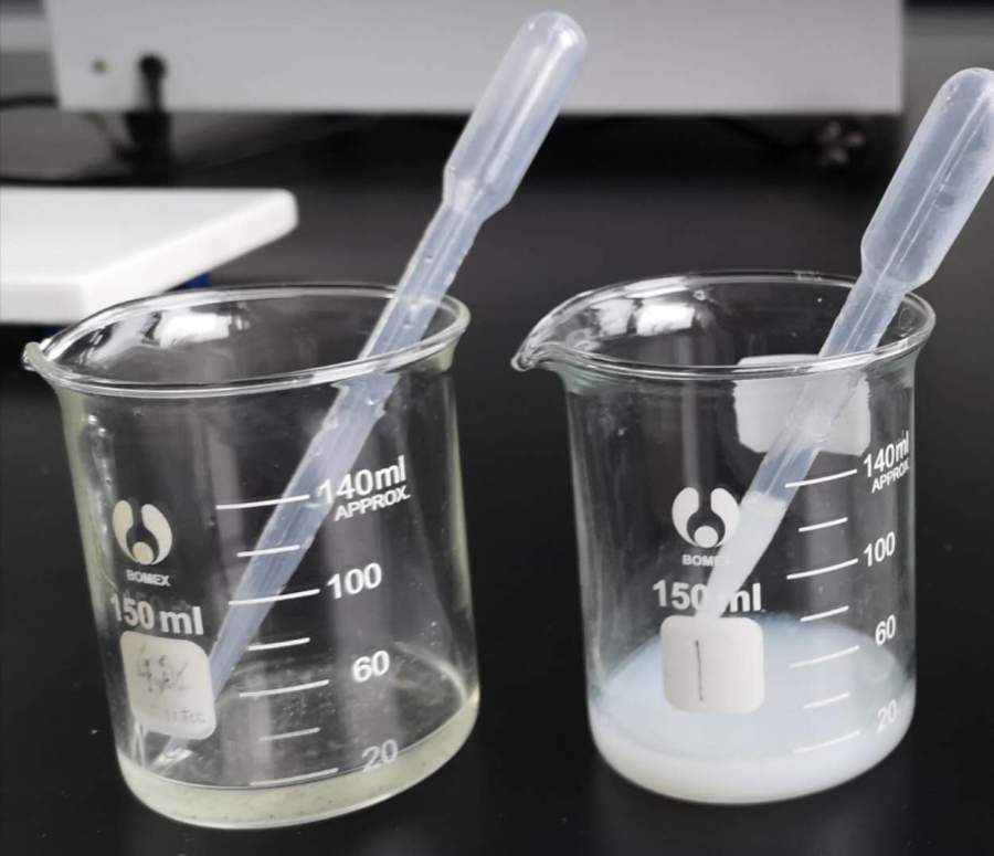 如图左侧为市售烷基糖苷配制的水溶液,右侧为自己合成的烷基糖苷1214(脱醇后的)水溶液1、为什么溶解性很差,是聚合度低吗?2、脱醇设备一般怎样选择呢?选择什么设备比较好?...