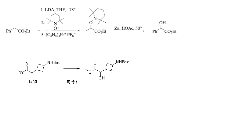 想在羰基(酯)α位氧化上个羟基,参考文献使用lda拔氢形成烯醇后,加入tempo,二茂铁六氟磷酸盐但是我的结构中含有一个酰胺氢,不知是否可行?本反应机理是怎么样的,二茂铁...