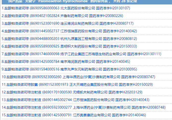 求助怎么查看一个药物是过了一致性评价还是没有过;比例盐酸帕洛诺司琼,在国家局查到拿到批件的有这么多家(见附图),从2008-2020年,好像2017年前的都有做一致性评价...