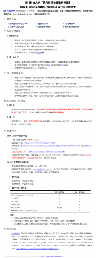 澳门科技大学赵庆林教授招 区块链/无线网络/机器学习 等方向博硕学生