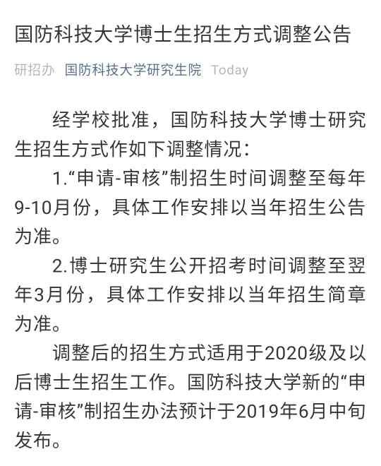 国防科大考博政策变动
