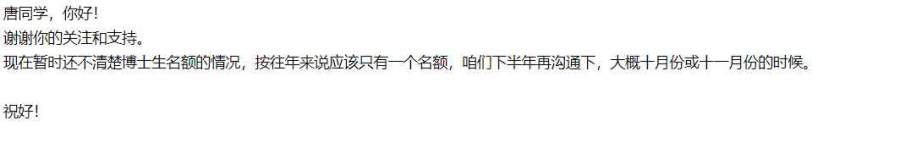 2022级博士申请,早上分别给不同学校的两位老师发邮件,下午就收到回复了,一个回复“研究方向还不错,抽时间我们聊聊氨,另一个回复“谢谢来信!看了你的材料,感觉你应该是很努力的学生,欢迎报考”。求助虫友们,应该怎么回复好。
