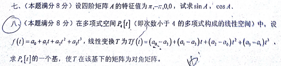 求助两道就矩阵论试题,麻烦懂的同学帮下忙,谢谢。