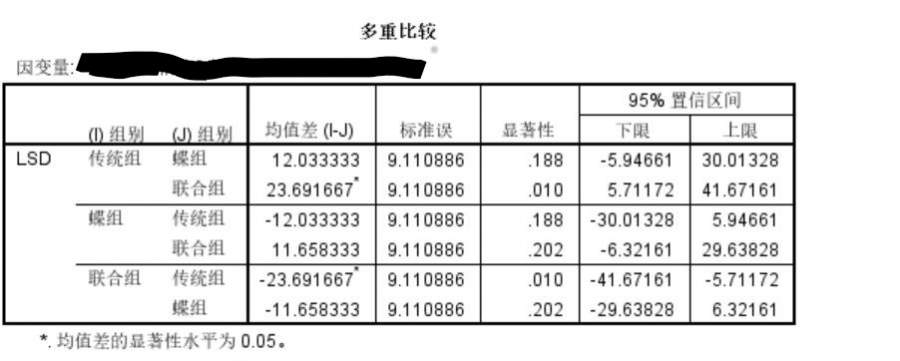 如图,本人不太会描述。请问三组资料统计比较这么描述对吗?传统组与蝶组比较,差异无统计学意义;联合组与传统组比较,差异有统计学意义,联合组优于传统组;联合组与蝶组比较,差异...
