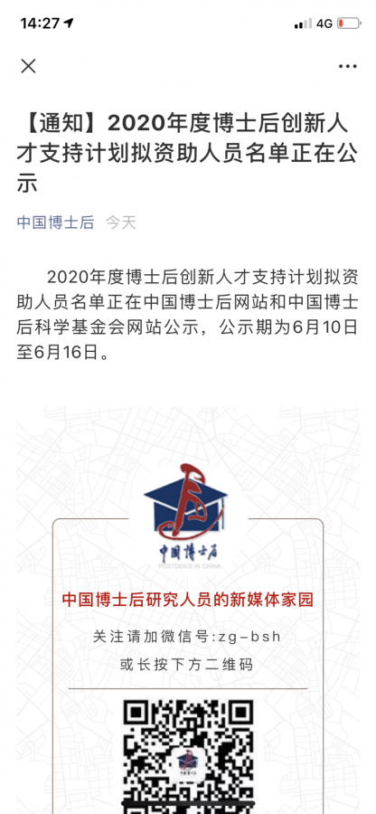 2020Äê¶È²©Ê¿ºó´´ÐÂÈ˲ÅÖ§³Ö¼Æ»®Äâ×ÊÖúÈËÔ±Ãûµ¥ÕýÔÚÖйú²©Ê¿ºóÍøÕ¾ºÍÖйú²©Ê¿ºó¿ÆÑ§»ù½ð»áÍøÕ¾¹«Ê¾£¬¹«Ê¾ÆÚΪ6ÔÂ10ÈÕÖÁ6ÔÂ16ÈÕ¡£ÎÒÃÇ