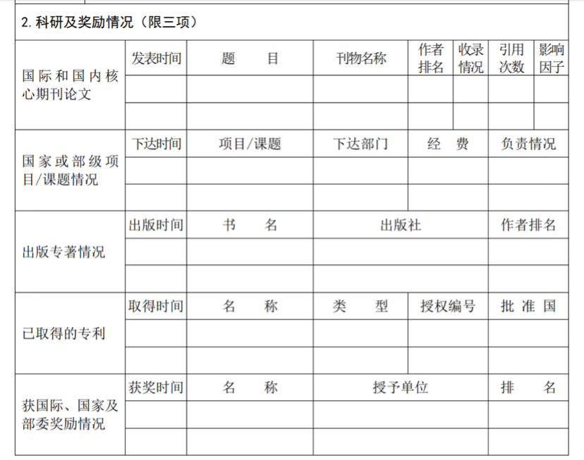 科研及奖励情况(限三项)