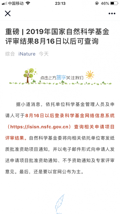 明天应该就能知道结果了,目前还不知道结果,虽然凉了的可能性很大,但是还是最后报个佛脚祈福一下。今年虽然自己觉得写得还行,立意也新,但是无奈领域内牛人辈出,自己还是硬实力上有缺失的。希望虫子们能有好运。不得不感慨下,今年基金委的评审工作总体还是很公平的,我自己在...