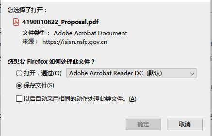 打开火狐浏览器,选择“申请与受理”标签——右键单击申请书图标寻查看元素”,大家看看有背景颜色的这一行文件名是否发生变化了?原来记得是grantcode等代码,现在变为file_pdf-proposal了。