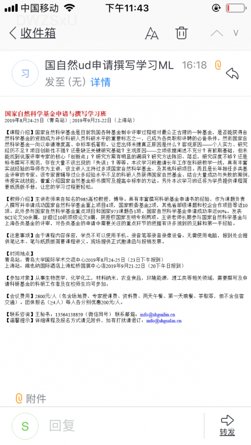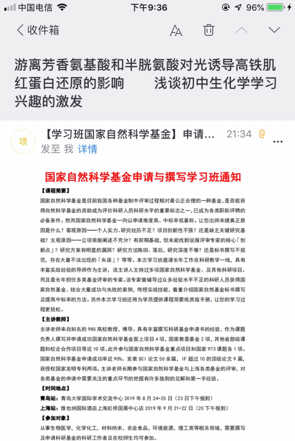 看到论坛里很多朋友在纠结收到了国自然撰写培训班的邮件和科研之友的邮件。结合我了解到的实例给大家说明一下情况。我同事全A上会,已中,收到了科研之友的邮件(不是出版基金那个)。我对象已中,昨天和今天收到了国自然撰写培训班的邮件。大家安心吧,都是骗子公司。