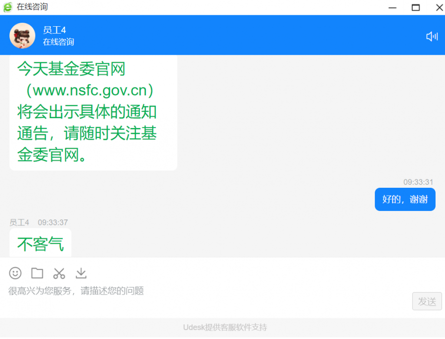 基金委在线咨询,确认今天出公告