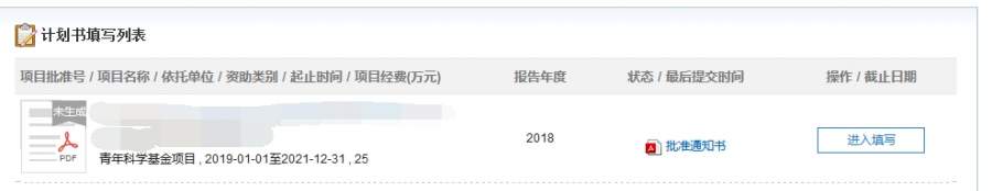 已中面上,刚才系统可以下载批准通知书和填项目计划书了