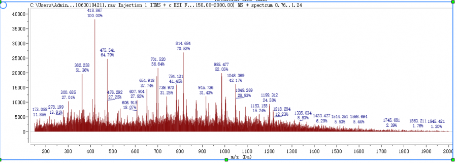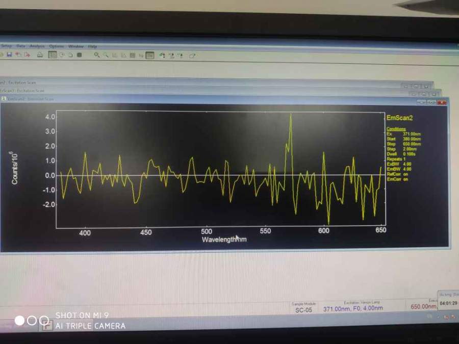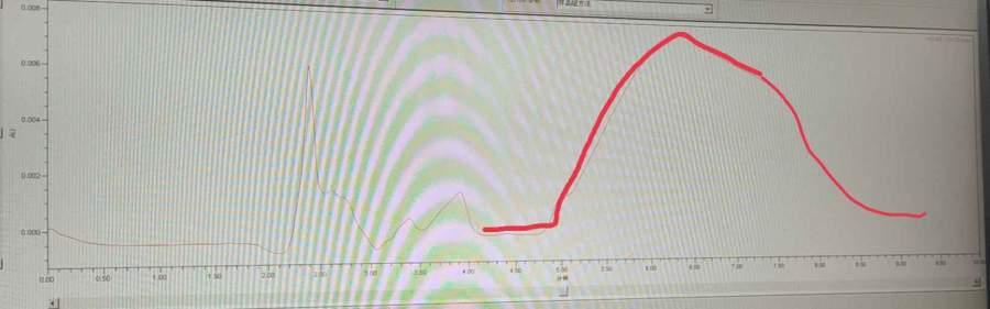 样品是四羟基香豆素,柱温35,流速1,波长254nm。流动相是乙腈和水,(纯乙腈跑的时候两分多钟就出峰了),后面试了两个比例95:5,80:20,都跑的是这个鬼样子,不知...