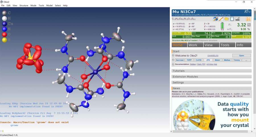 求助大神解析一个单晶,对称性比较高,配体无序且处于对称轴上,原始数据和基本信息在附件中。谢谢啦!!!