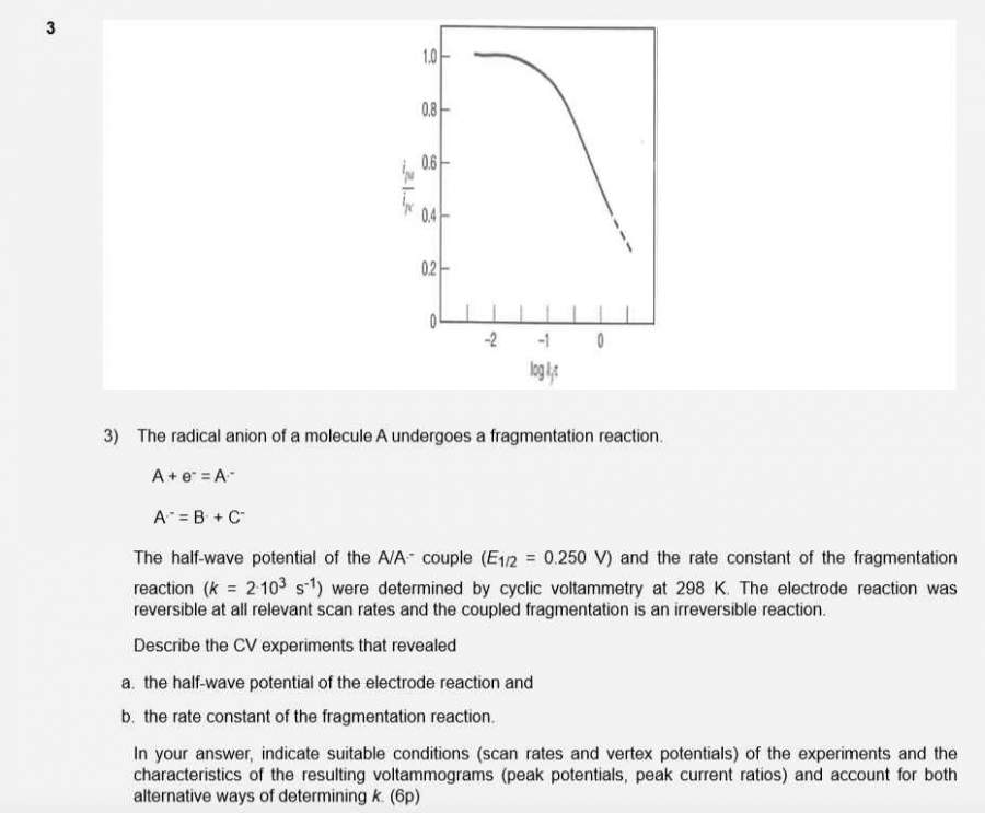 已知物质A发生EC反应,电极反应可逆,化学反应不可逆。主要是不太明白如何将速率方程和扫描速率结合在一起。(实际是一道考试题……看了很多资料都没搞懂,老师不提供答案)谢谢大...