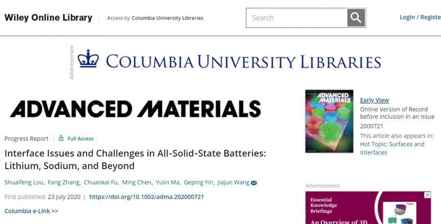 Advanced Materials最新综述:全固态电池的界面问题和挑战