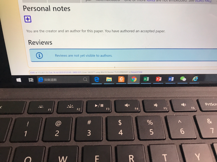 有两篇文章发表,一篇自己是三作,另一篇是一作。1.如图一,打开myprofile中显示有acceptedpaper,2.如图二,但是以自己一作的那篇文章的其中一个作者登陆...