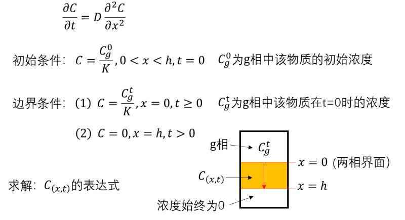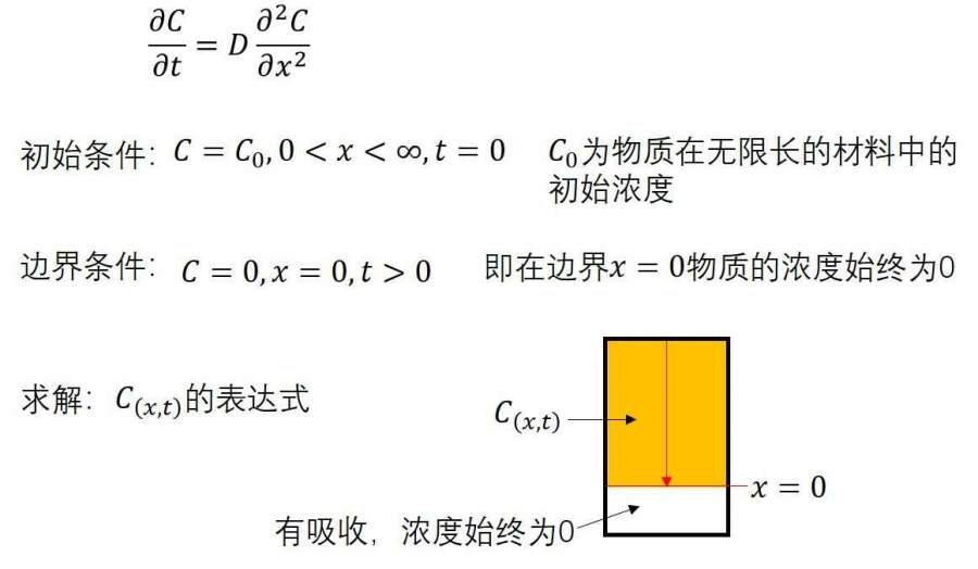 如图所示,基本问题是某材料中含有一定浓度某物质,自上而下扩散,求解t时刻x位置介质中物质浓度。请教数学专业人士,该偏微分方程如何求解?非常感谢!