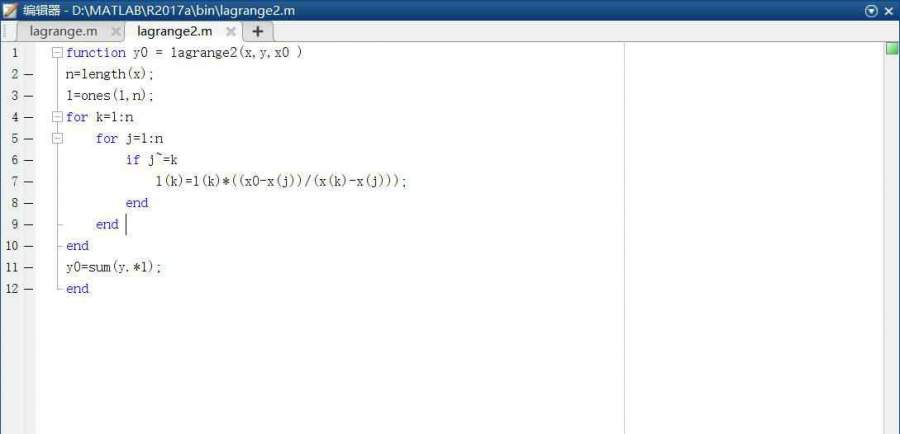 请问这个matlab代码有什么需要改进的地方?计算lagrange插值多项式的代码,输入x=和x0=1.5以及x=和x0=2.5输出都是y0=30,请问怎么改进?代码如下...