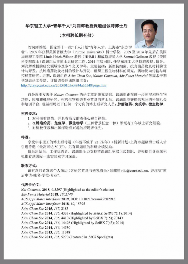 中国地质大学(武汉) 夏帆教授课题组 诚聘博士后(二)