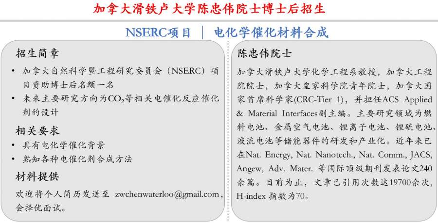 福州大学化学学院能源与环境光催化国家重点实验室喻志阳研究员课题组计划2019年招聘博士后两名,有透射电镜操作经验者优先。其中,一名博后方向为光催化方向,进站福州大学化学学院;另一名博后方向为金属和陶瓷多晶样品的制备和表征,进站福州大学材料学院。欢迎热爱科研、有...