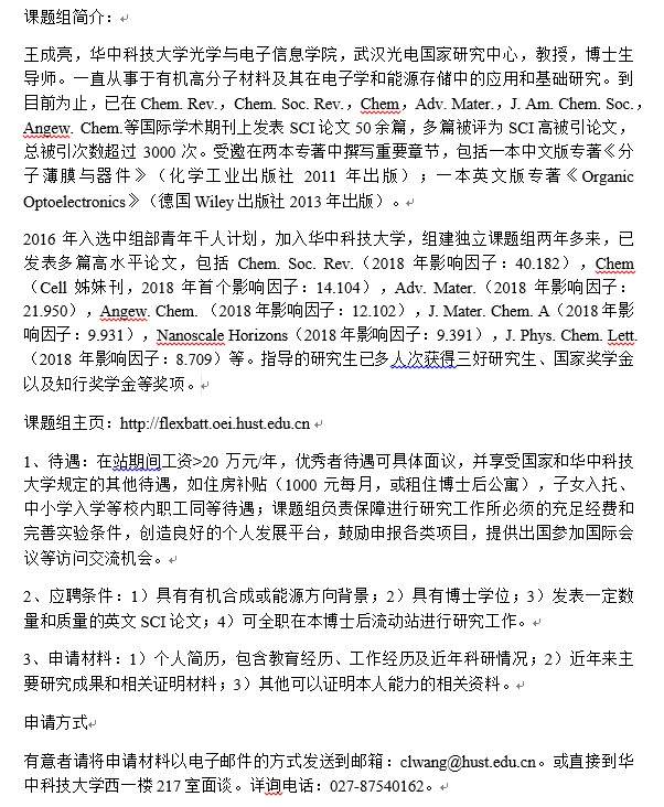 因课题组发展需要,南京大学现代工程与应用科学学院柔性储能器件课题组诚聘博士后、助理研究员和副研究员。唐少春教授个人网页:'http://eng.nju.edu.cn/55/67/c5183a218471/page.htm'个人简介:2008年毕业于南京大学,获...