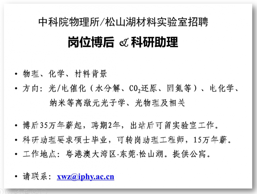 【招聘方向】.钙钛矿材料合成及其光电器件制成和测试。要求:.扎实的钙钛矿材料合成基础;.熟悉钙钛矿半导体器件的理论、制成和测试;.有撰写基金申请书并获批者优先。【课题组简介】课题组导师张教授博士毕业于加州理工电子工程系,曾于加州伯克利大学从事博后工作。2015...