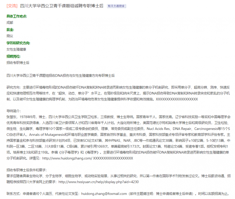 本人不回复私信。职位信息详见附件文件,职位需要应届博士毕业生,或者毕业一到两年之内的博士。专业要求高分子方向,高分子合成和有机合成相关知识技能。要求应聘者有较强的工作热情,能够有独立做研究的能力,有决心为以后找到更好的工作多发表文章的意愿。课题组比较新,老板希...