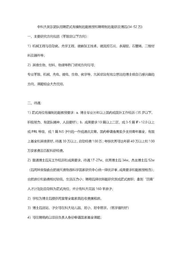各位有志于从事科研工作的博士们:中国科学院院士,北京化工大学化工资源有效利用国家重点实验室段先生继续招聘博士后!科研条件足以满足你所想所需!要求:具有扎实的化学、化工、催化及无机功能材料学科基础,具有计算化学背景的更佳!待遇:年薪20万/年起,免费提供一居室的...