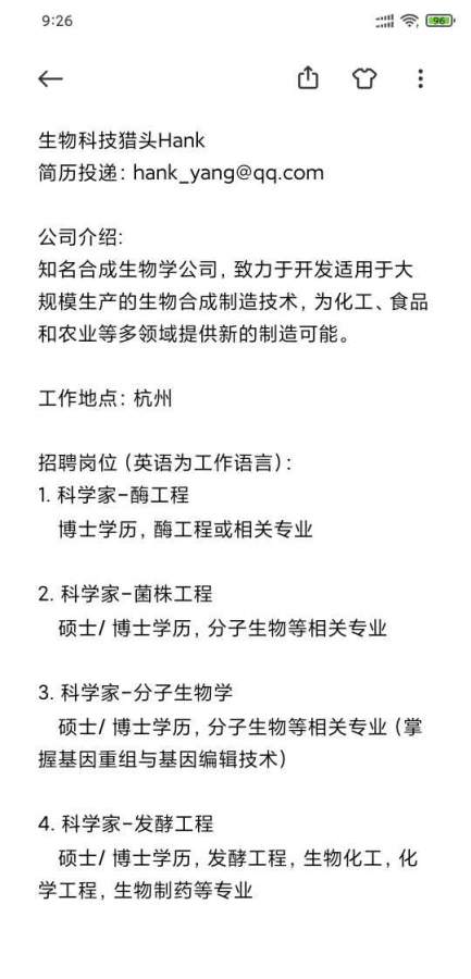 研究方向:主要从事蛋白质工程相关工作,包括但不限于通过非天然氨基酸改造蛋白,开发抗体药物等。岗位:科研助理岗位工作内容:1.分子生物学相关实验,如核酸提取,亚克隆,蛋白质表达纯化,sds-page,westernblot,细胞分析等;2.配合完成指定的任务;3...
