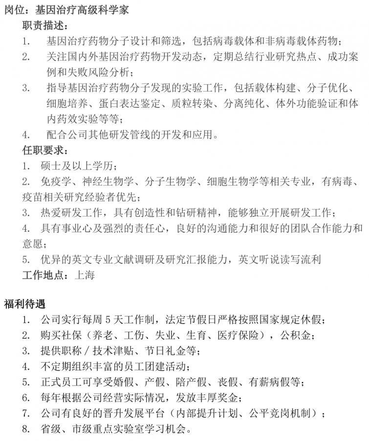 ÉϺ£»ùÒòÖÎÁÆÒ©Îï³õ´´¹«Ë¾ÕÐļÑз¢¸Ú