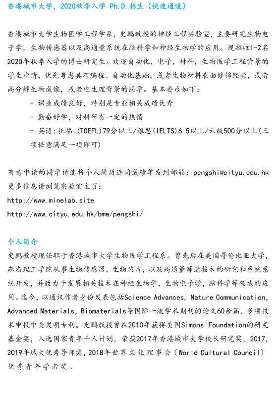 香港理工大学应用物理系ZhaoJiong研究组2020-2021,2021-2022年度招收全奖博士生(3年制或者4年制),其中2020年度秋季入学申请本月30日截止。研究方向:原位透射电子显微学(包括力学,电学,热学,液体,气体等)。特色研究工具:最新双球差...