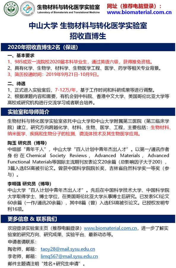 哈尔滨工程大学材化学院闫俊教授课题组招收2020届推免生