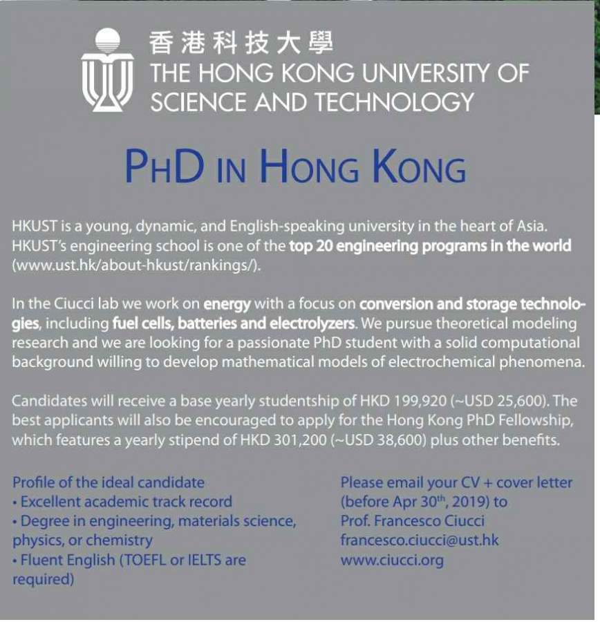 香港科技大学机械工程系Ciucci组诚招理论计算方向博士