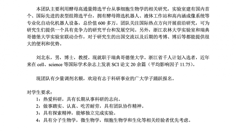 课题组学术带头人为2级教授,现有2项国家自然科学基金在研,博硕研究生多名,学术氛围浓厚,课题组师生关系融洽。现欲招收2名化学工程方向研究生,欢迎本专业考生联系调剂。请发简历(包括初试成绩、所学专业、本科成绩单和个人简介等信息)至'545715203qq.com...
