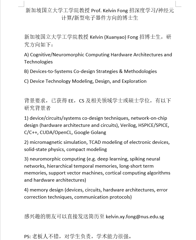 新加坡南洋理工大学化学与生物化学系Prof. Leong实验室欢迎中国博士留学生加入