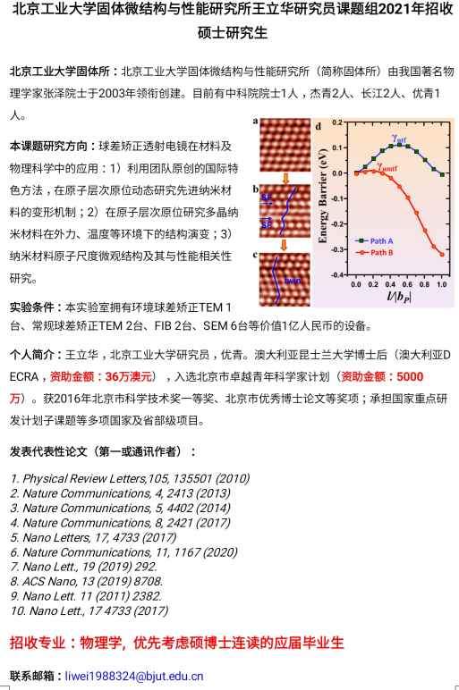 湖北大学物电学院,微纳传感材料与器件实验室,招收电子科学与技术专业调剂,报名3.25中午截止,请感兴趣同学速联系wangzhaohubu.edu.cn,王老师。要求有固体物理和半导体物理专业课程学习背景。已作废[lasteditedbywangzhao33on...