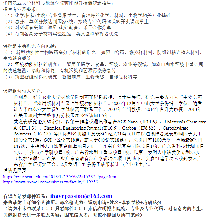 学校:中南林业科技大学招生年级:2021级招生人数:2人招生状态:正在招生中介绍:本课题组的研究方向为自由基化学、金属有机化学及有机合成方法学;目前课题组在Angew.Chem.Int.Ed.(影响因子12.3)、Org.Lett.、Chem.Commun.等...