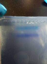 PCR后进行跑胶检测,发现跑完胶之后,在紫外照射之前,拿到的胶为下面的那种情况,肉眼看到的后面两个图中,其中浅蓝色的为目的条带,但是两位的那些深蓝色的是什么啊,是非特异条带吗? 还有,在紫外照射图片中,目的条带跑成那样,能进行胶回收吗? P60226-091039-001.jpg.JPG P60226-091313.jpg.JPG P60226-091345.jpg.JPG |
