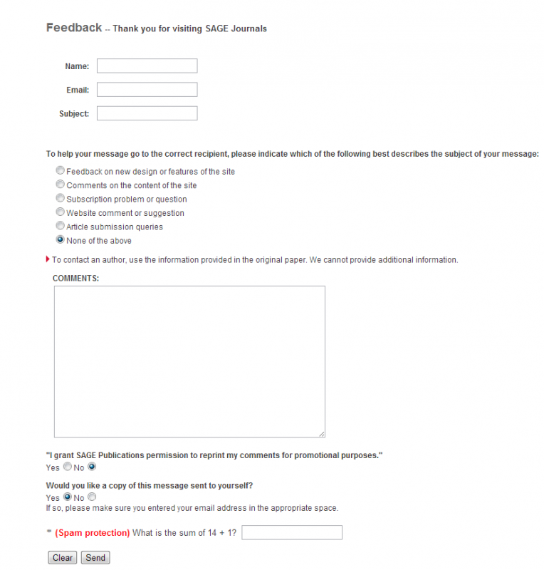 论文已经online了,收到的邮件里,有这么一段话,实在不懂什么意思 ,大家帮忙看一下 We value feedback on your experience of publishing with us and would like to encourage you to complete the Journal Author Survey you will also receive shortly. Best wishes, SAGE Author Services https://online.sagepub.com/feedback 打开这个链接后,就是图片上那样的 请问这个还需要填吗??? QQ截图20160226200857.png 如果需要填的话,comment一项怎么填呢,这三个选择项 都该怎么选呢 邮件的最后一段话“Note: please do not reply to this message. Replies to this message are routed to an unmonitored mailbox. If you have questions please direct them via our Feedback page at https://online.sagepub.com/feedback and note the article and journal titles” 是不是有问题的话把刚才那个网址打开写写,没有问题的话,就不用管了啊 |